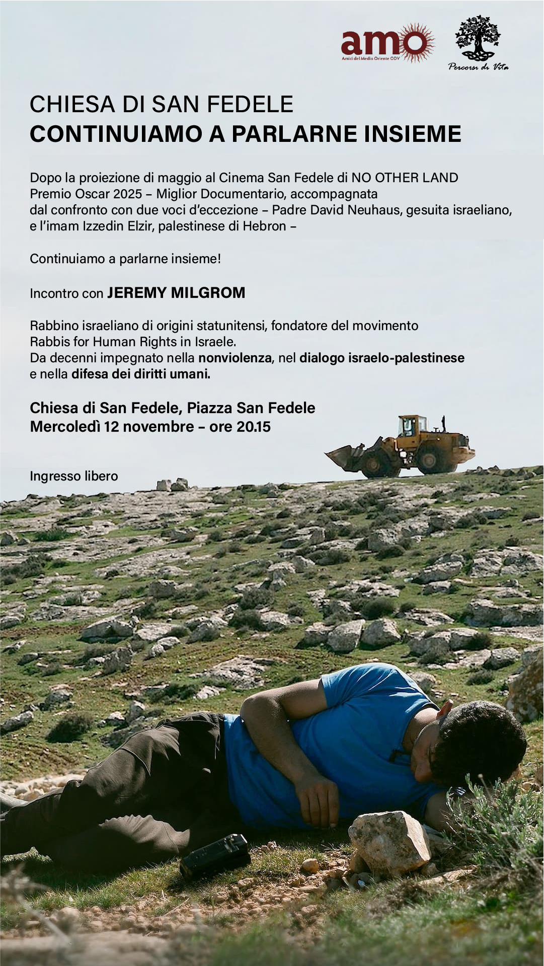 Dopo la proiezione di maggio al Cinema San Fedele di NO OTHER LAND Premio Oscar 2025 – Miglior Documentario, accompagnata dal confronto con due voci d’eccezione – Padre David Neuhaus, gesuita israeliano, e l’imam Izzedin Elzir, palestinese di Hebron